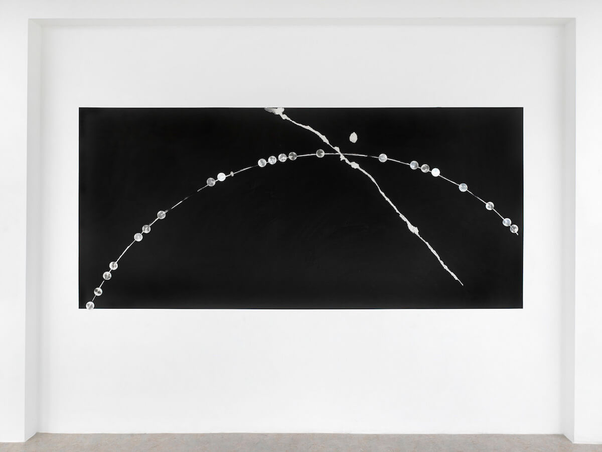 schwarze Wandbemalung mit ausgesparter weißer Linie, vorhandener Riss