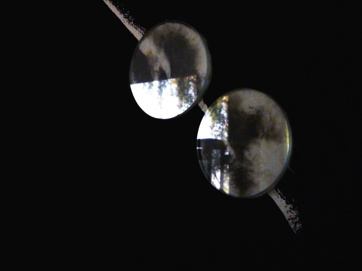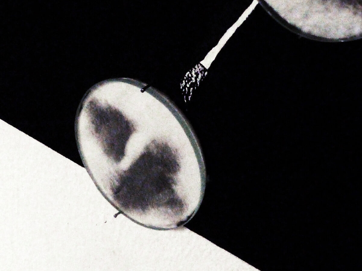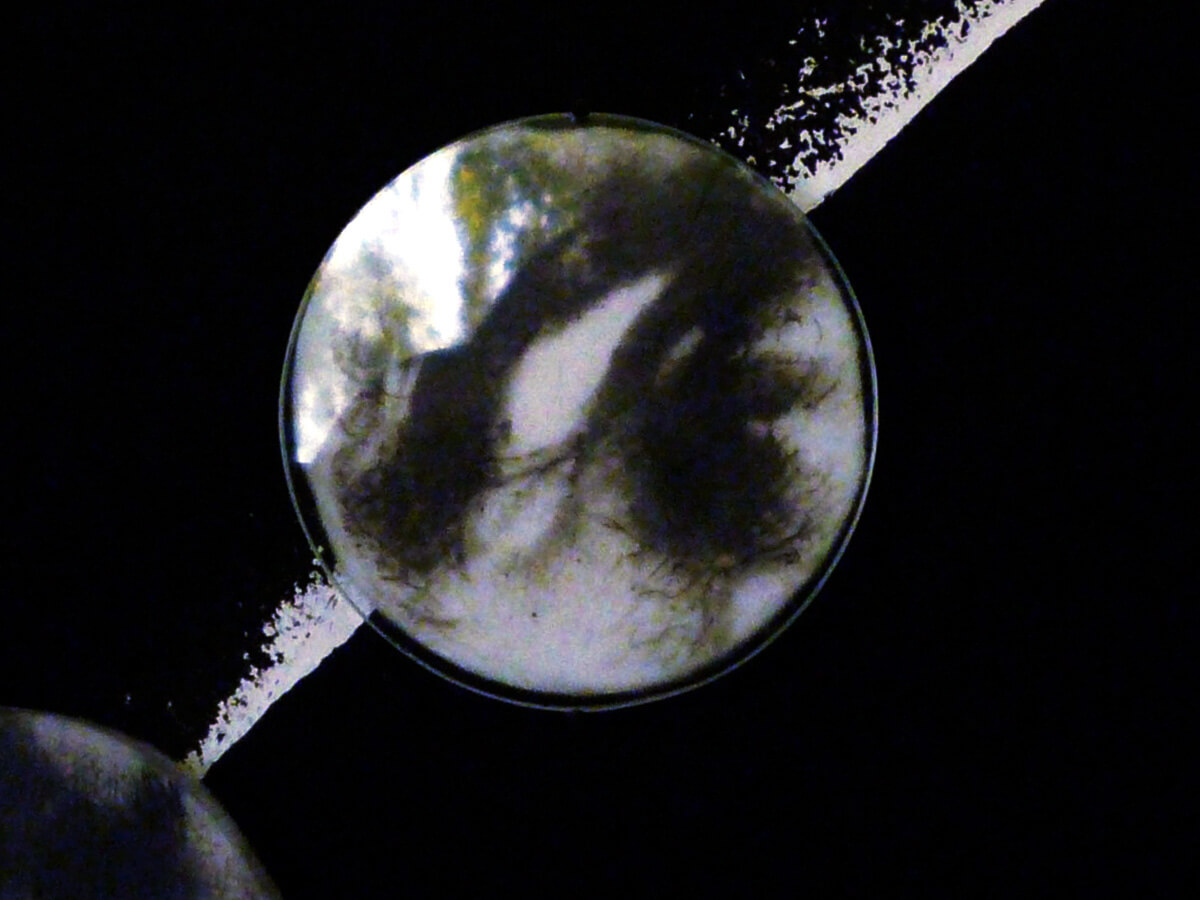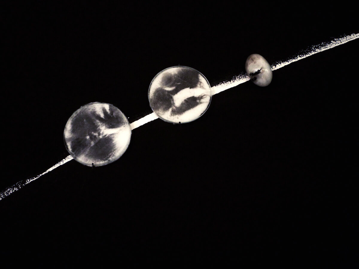 Rundgläser, Farbabrieb auf Baumwolle, Mondstein (Orthoclas)